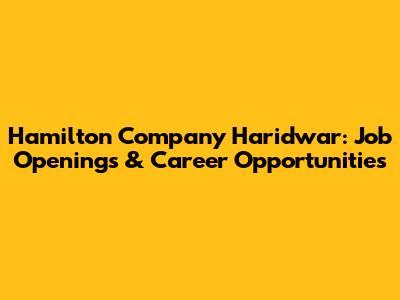Hamilton Company Haridwar: Job Openings & Career Opportunities