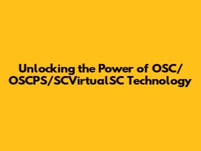 Unlocking The Power Of OSC/OSCPS/SCVirtualSC Technology